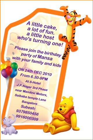 Winnie the Pooh 1st year Ecard Design sample Template Invitation 7 events.